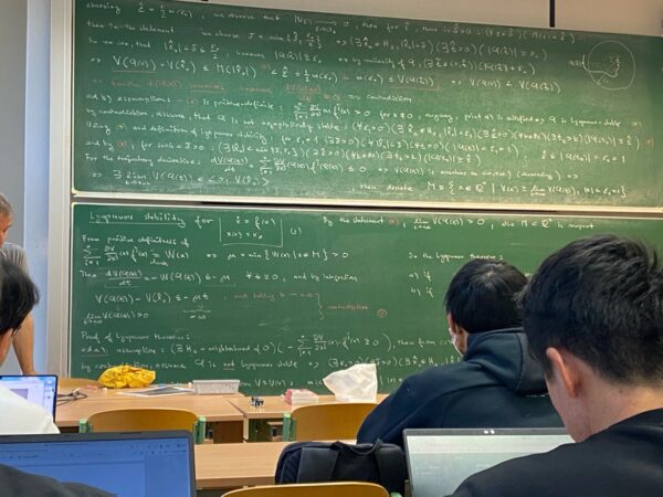・印象的だったのは、指導してくださっていた先生の研究に対する姿勢です。先生は数学的に厳密な論理を考えようとするあまり現象に対する理解や物理的な考え方を疎かにしてしまう傾向に対して、警鐘を鳴らされていました。論理だけでなく、それが記述している現実の世界を正しく捉えてこそ、真に価値のある研究ができるという考えは日本にいるとき以上に強く感じました。